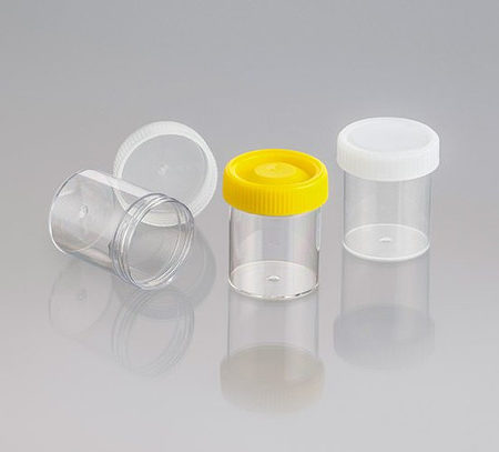 Polystyrene container, gamma sterile, unlabelled with yellow polyethylene Screw Cap