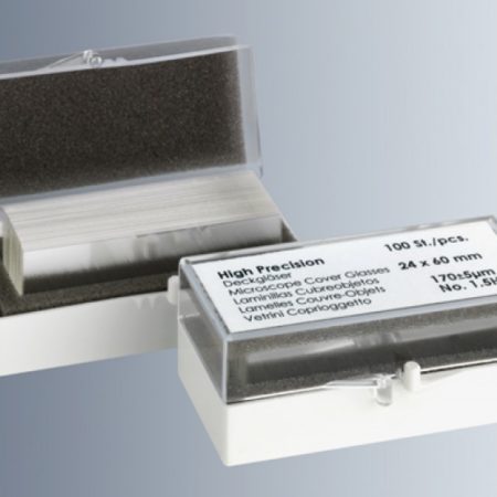 Marienfeld Superior cover glasses feature an excellent flatness and smooth surfaces thanks to the best material. No cover glasses made of soda lime glass match the quality of our borosilicate glass coverslips. Even when archived for years preparations keep their optical quality thanks to our noncorroding glass and the particularly low tolerance of the material thickness.Our precise machining processes make sure that our coverslips have the exact size and their edges are cut with high precision. All of our efficient processes include a stringent, integrated quality control and thus ensure high quality coverslips which do not stick together.